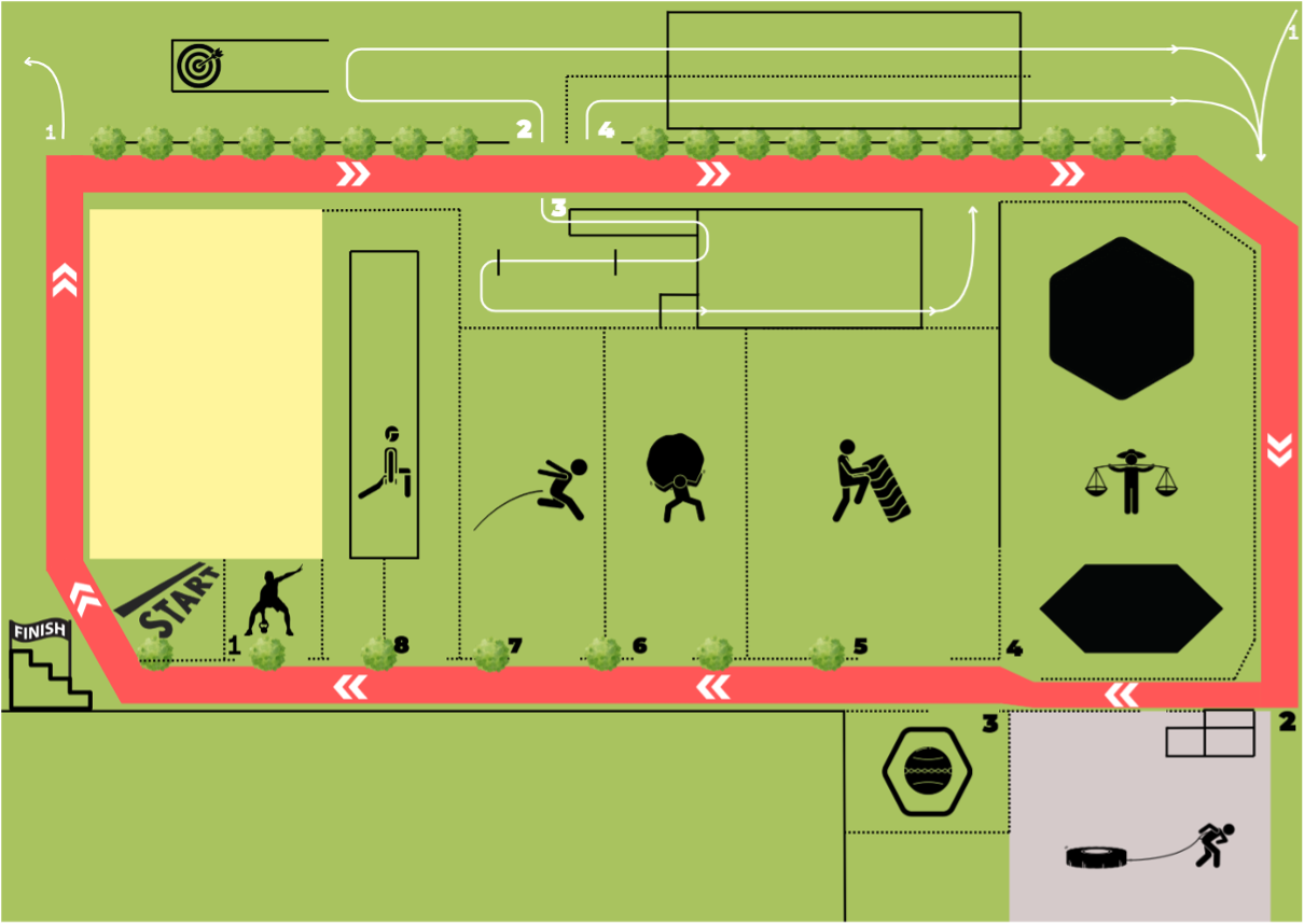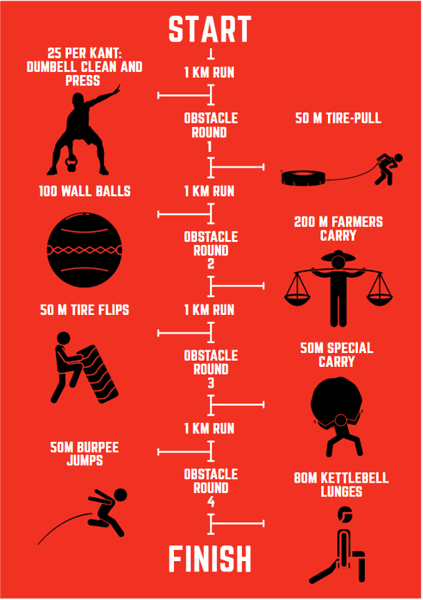 Duo: Als je als duo inschrijft mogen de krachtoefeningen worden gedeeld en je mag elkaar helpen bij de obstakels.