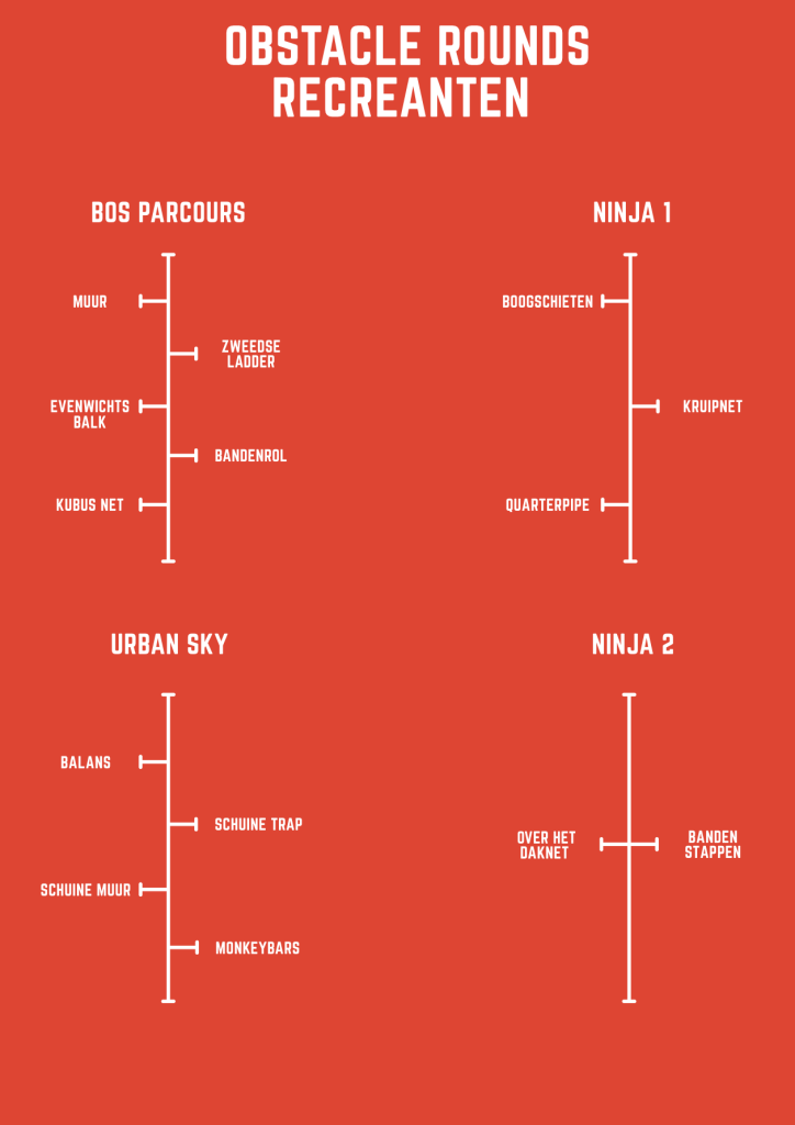 3. Obstakels: De challenge bestaat uit 4 obstacle rounds.